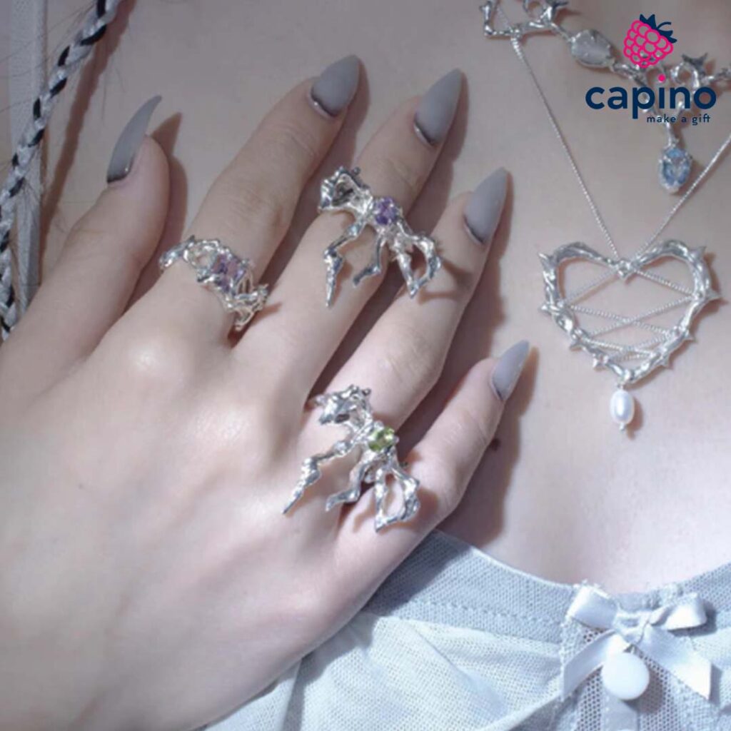 • Пръстени за нокти – пръстен на първата фаланга с накрайник на нокътя. Това са абсолютно екстравагантни сребърни бижута, които не всеки ще хареса. Но, повярвайте ми, няма да останете незабелязани с такъв пръстен, където и да се появите. Разбира се, такъв аксесоар няма да бъде актуален навсякъде и не винаги… Най-вероятно ще допълни вечерна рокля или коктейлно облекло. Тези пръстени са изработени от сребро или злато, украсени с камъни и шарки. Избирайки такъв пръстен върху нокътя, вземете предвид размера на нокътя и ширината на нокътната плочка. Помислете също, че с такъв пръстен не е много удобно – ще трябва да свикнете. Сребърните пръстени на ноктите са любими на екстравагантните звезди от шоубизнеса. Една от първите, които започнаха да демонстрира подобни аксесоари на червеня килим, беше Лейди Гага.