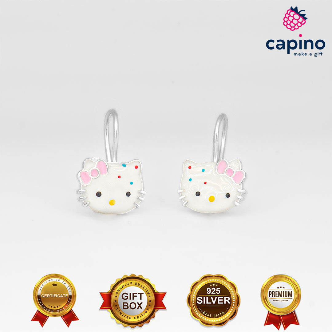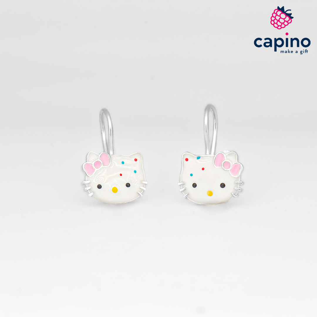 Детски сребърни обеци хелоу кити Maya са изработени от сребро и са с родиево покритие, и горещ емайл.