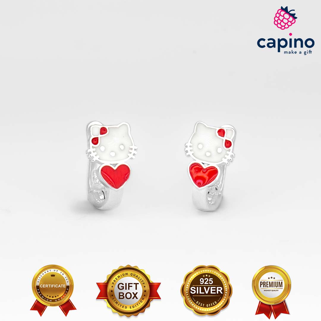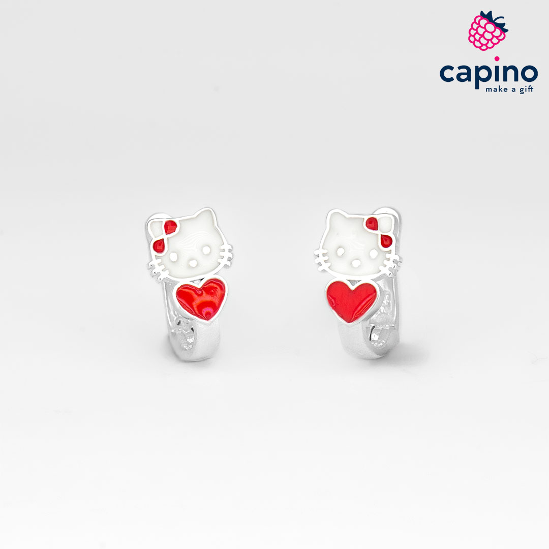 Детски сребърни обеци коте със сърце Zelda са изработени от сребро и са с родиево покритие, и горещ емайл.