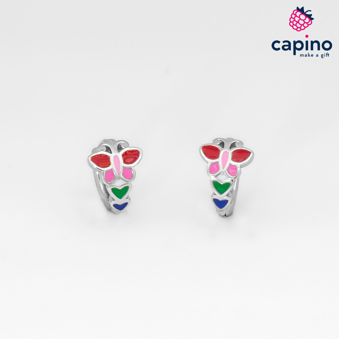 Детски сребърни обеци пеперуда Ella са изработени от сребро и са с родиево покритие, и горещ емайл.