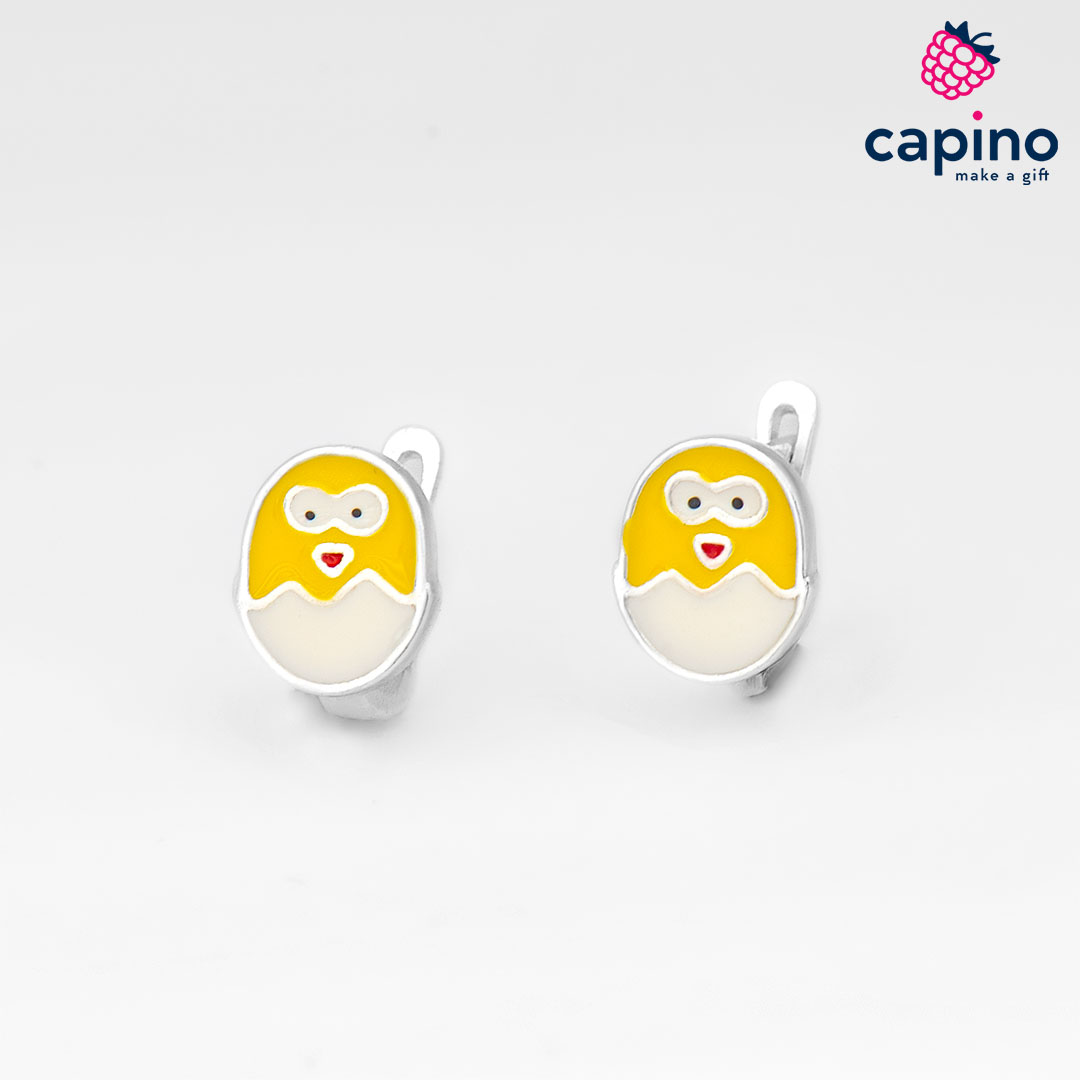 Детски сребърни обеци пиленце Olivia са изработени от сребро и са с родиево покритие, и горещ емайл.