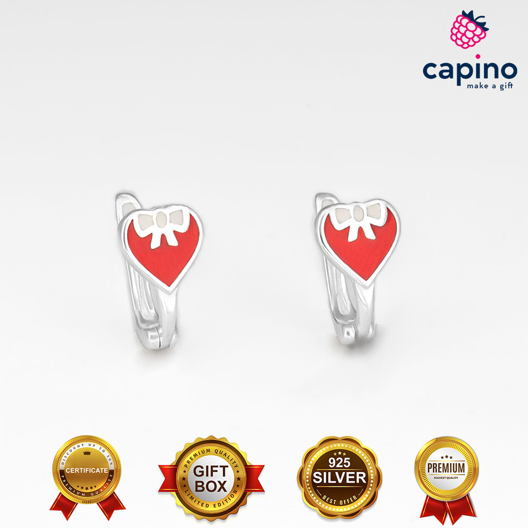 Детски сребърни обеци сърце Annie са изработени от сребро и са с родиево покритие, и горещ емайл.