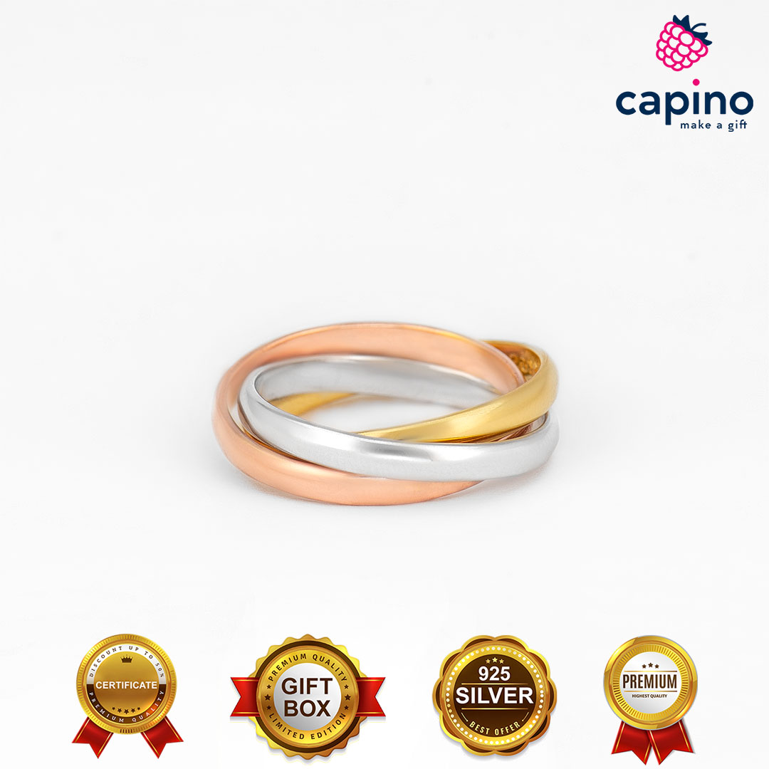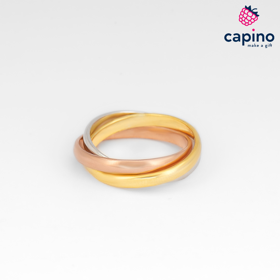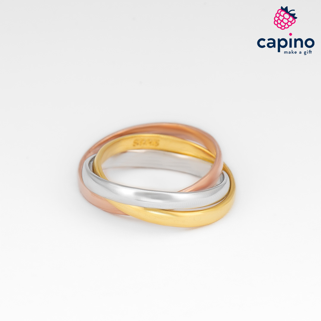 Сребърен пръстен тройна халка Virgilio е изработен от сребро и е с 14 карата злато и родиево покритие, и няма инкрустирани камъни.