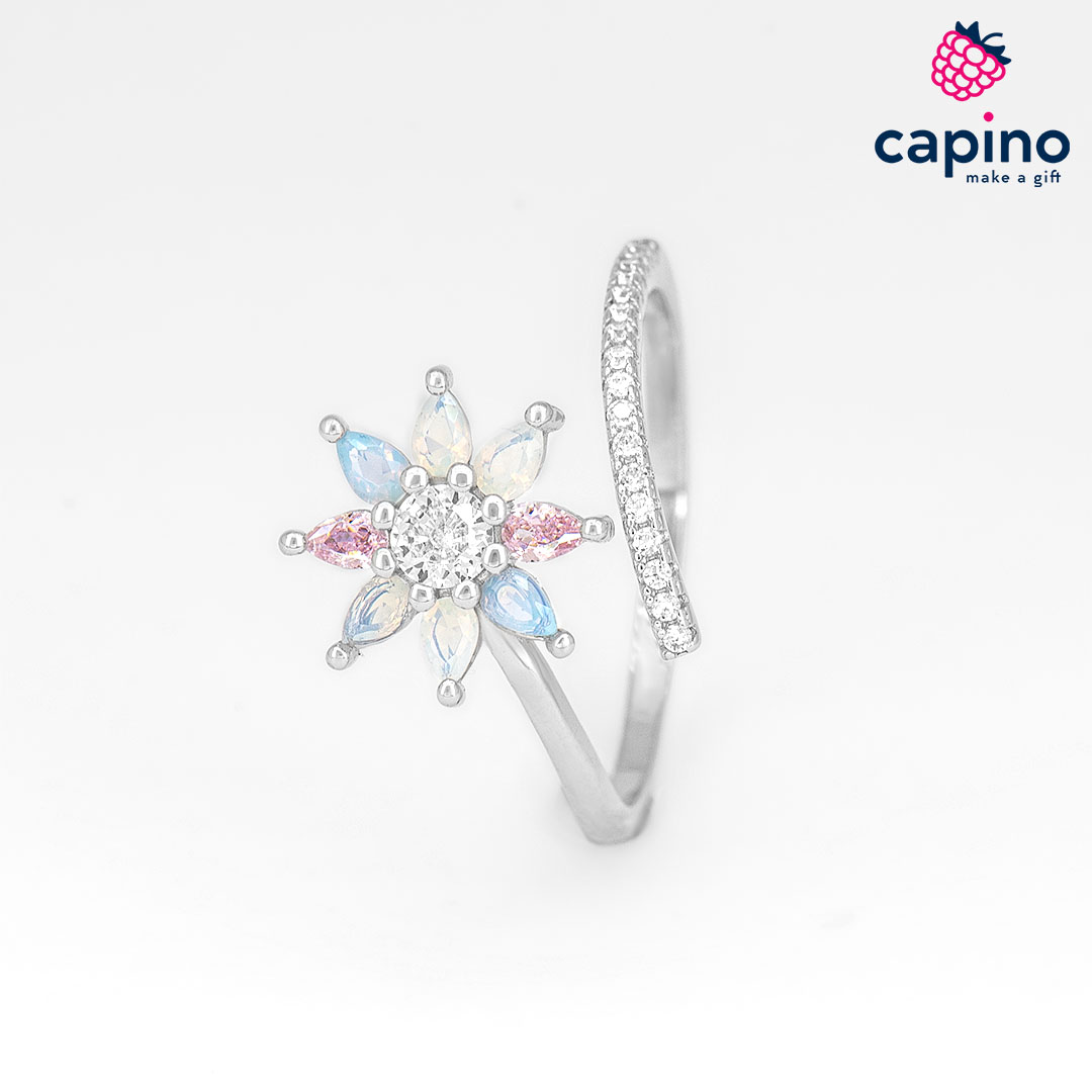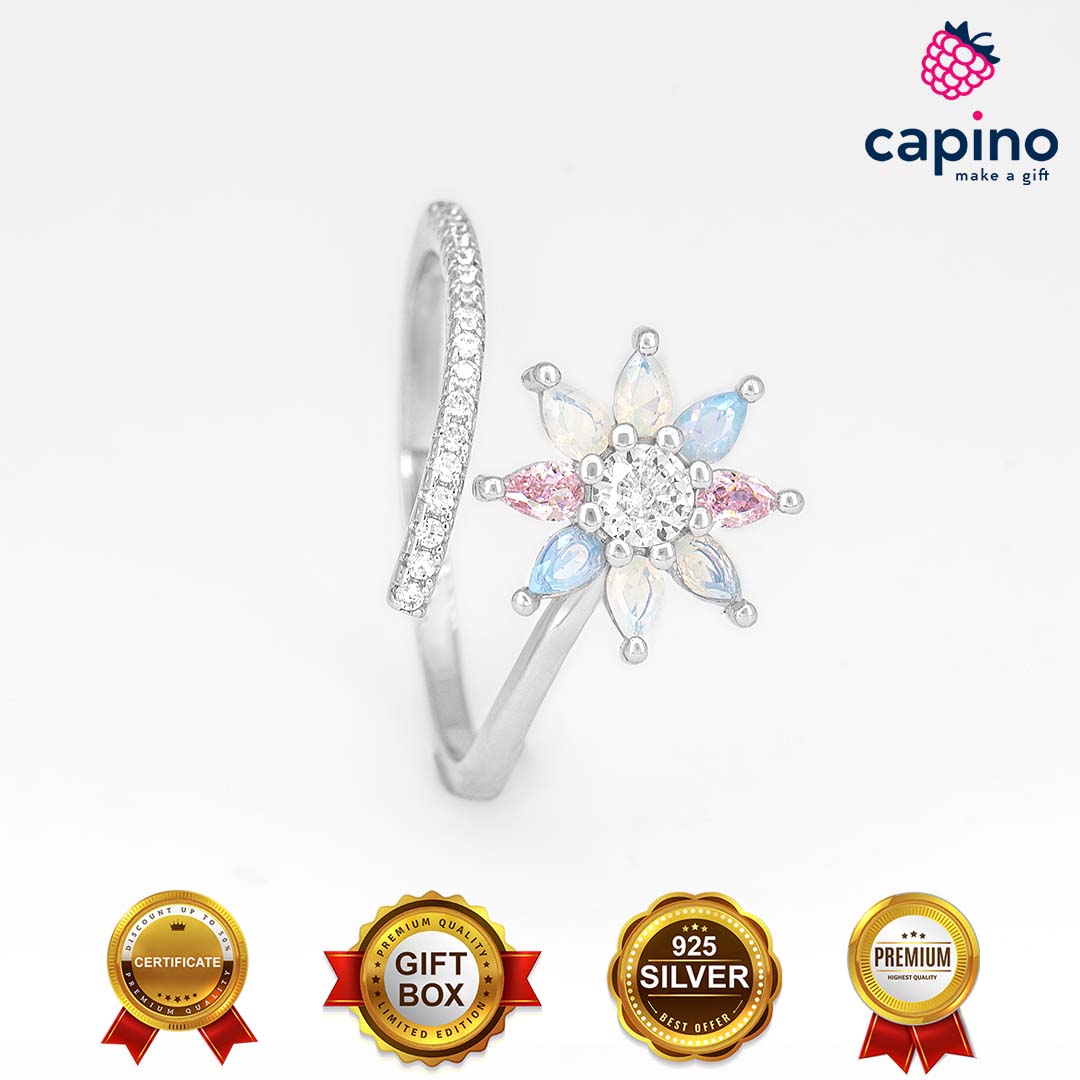 Сребърен пръстен цвете Adelmo е изработен от сребро и е с родиево покритие, и инкрустирани – цветни цирконии.