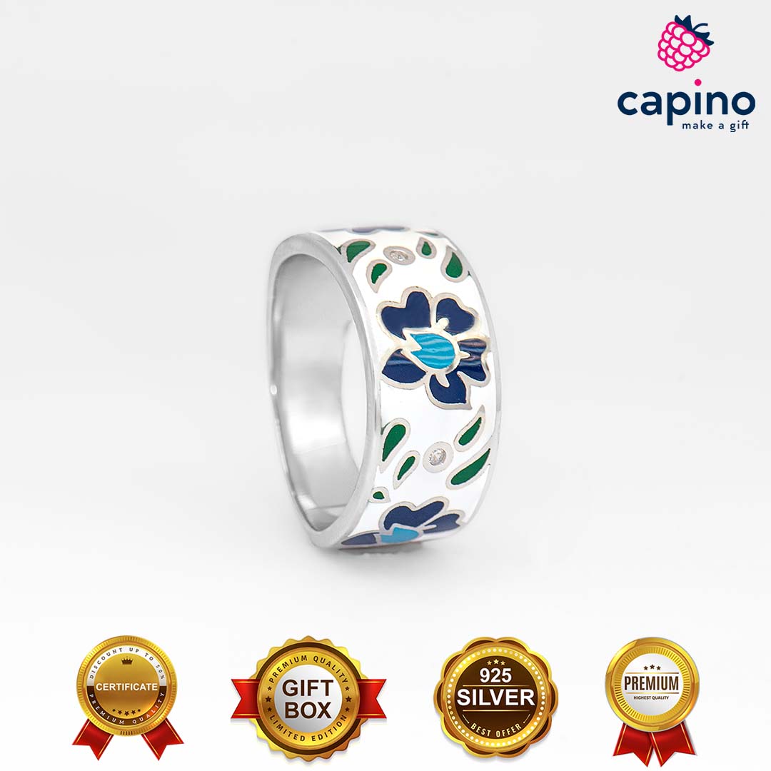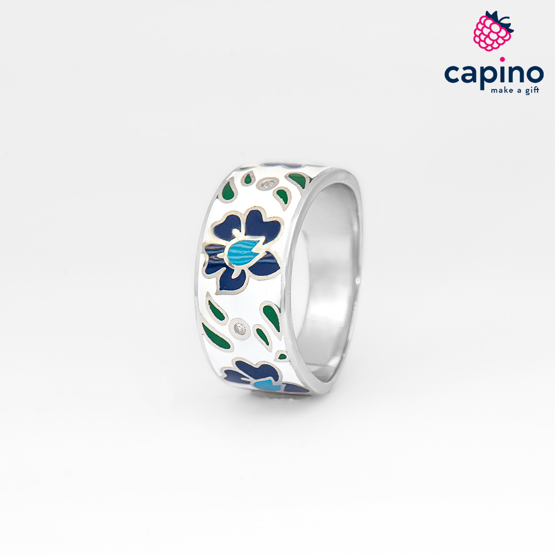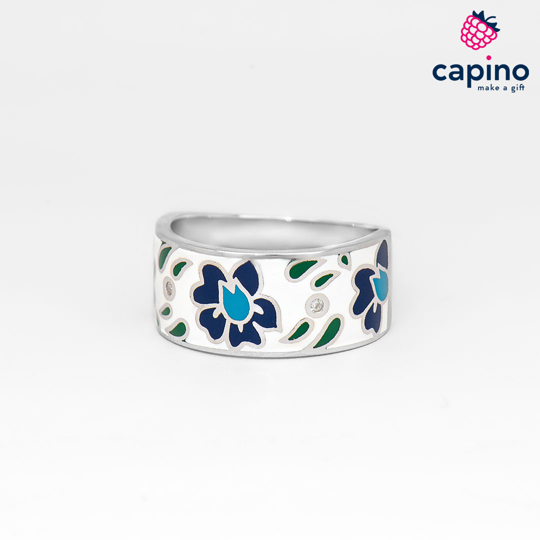 Сребърен пръстен цвете Pasqual е изработен от сребро и е с родиево покритие, и горещ емайл.
