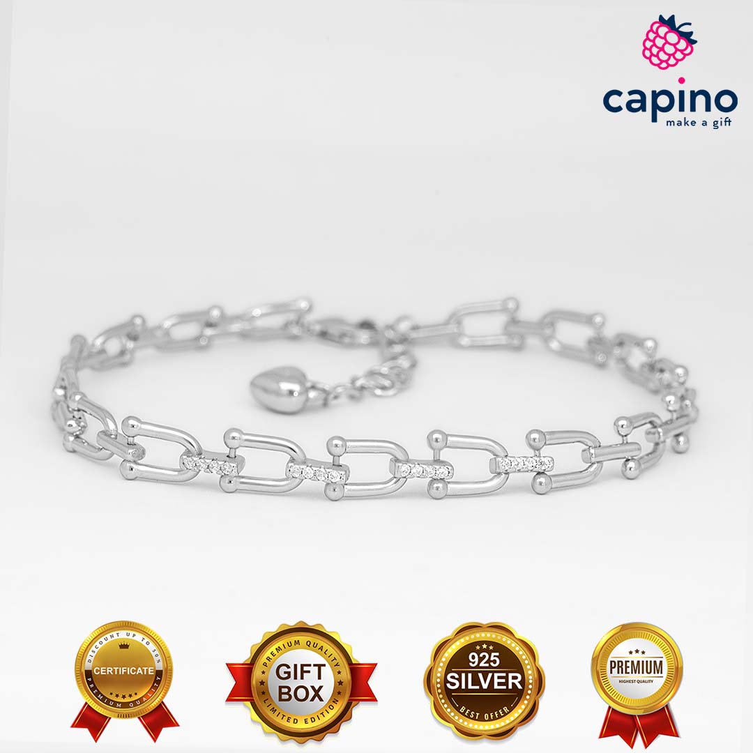 Сребърна гривна Adelasia е изработена от сребро и е с родиево покритие, и инкрустирани камъни – цирконии.