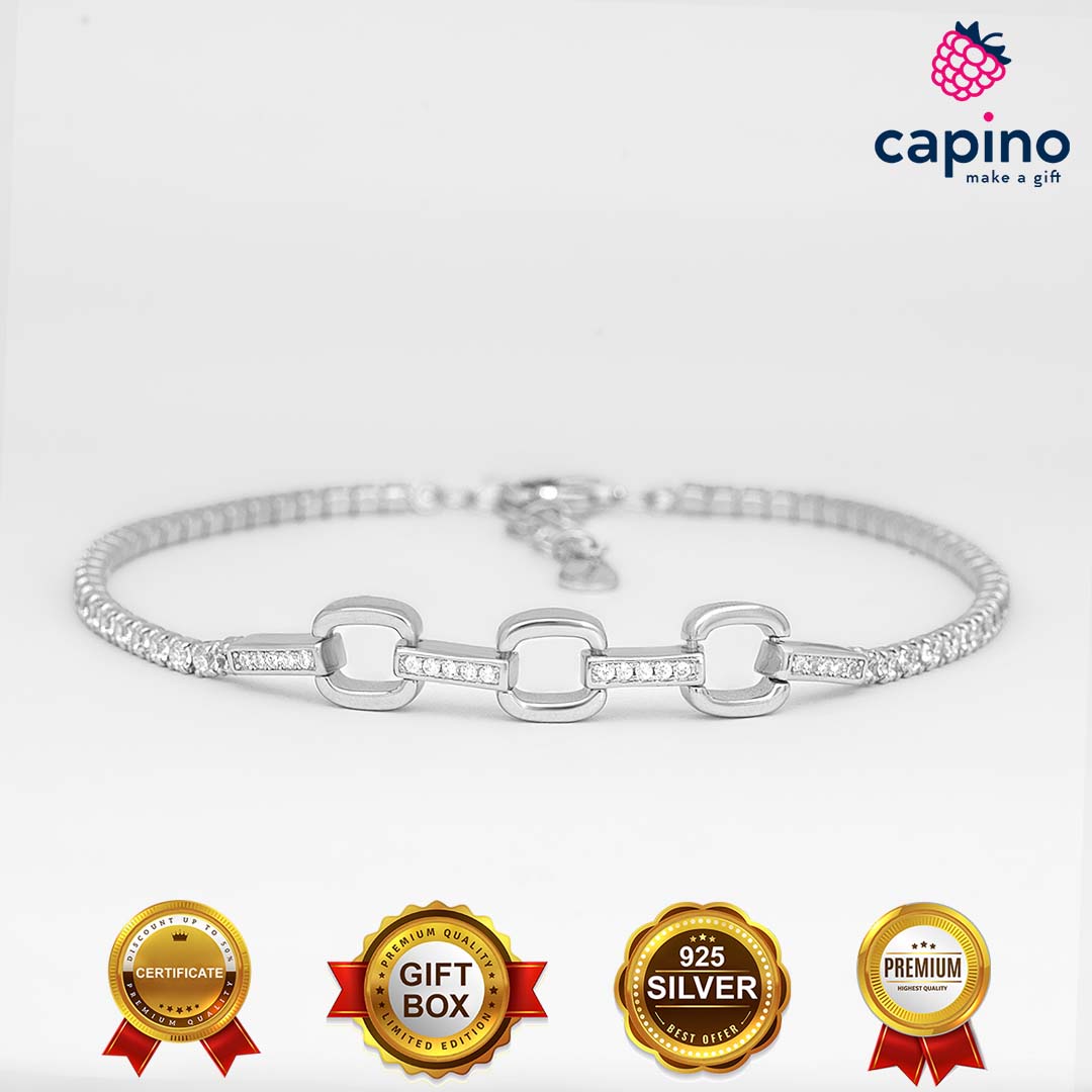 Сребърна гривна Amanda е изработена от сребро и е с родиево покритие, и инкрустирани камъни – цирконии.