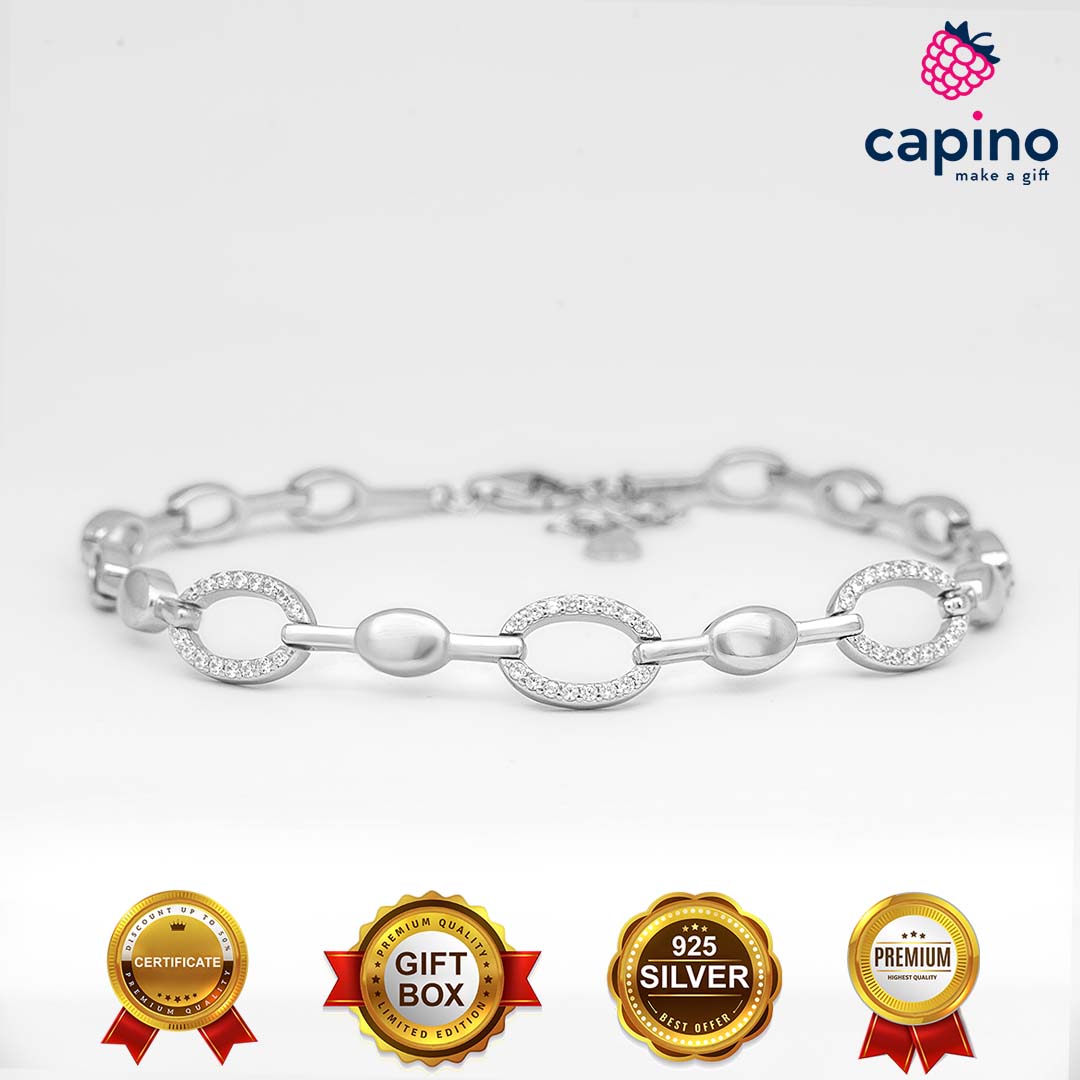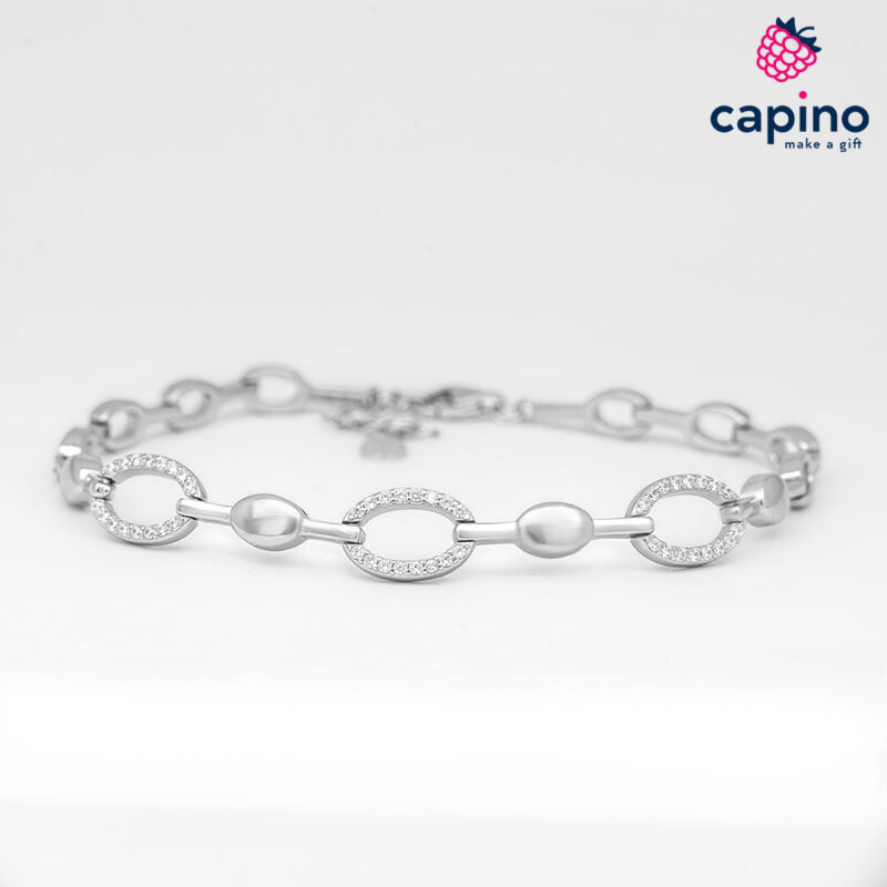 Сребърна гривна елипси Loretta е изработена от сребро и е с родиево покритие, и инкрустирани камъни – цирконии.