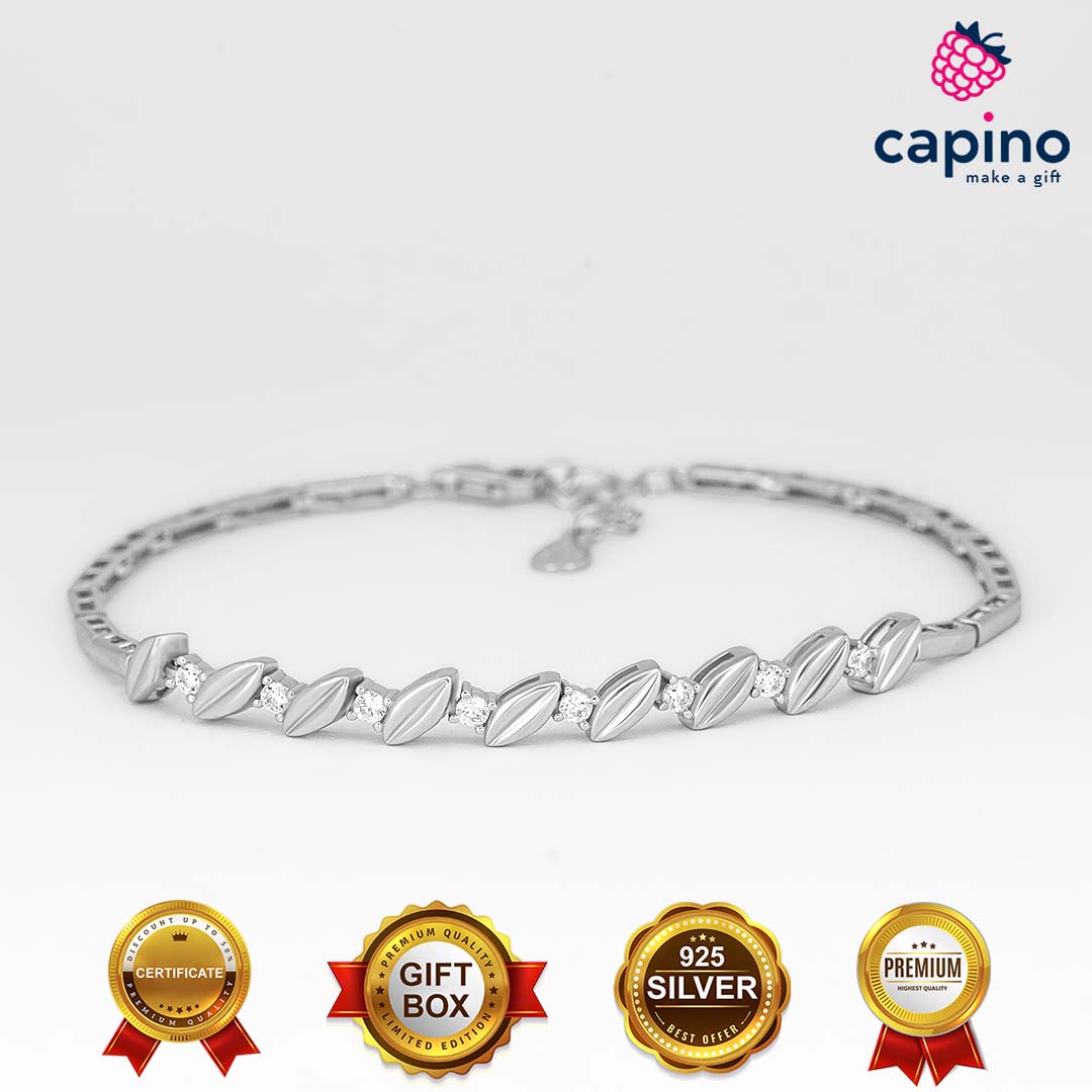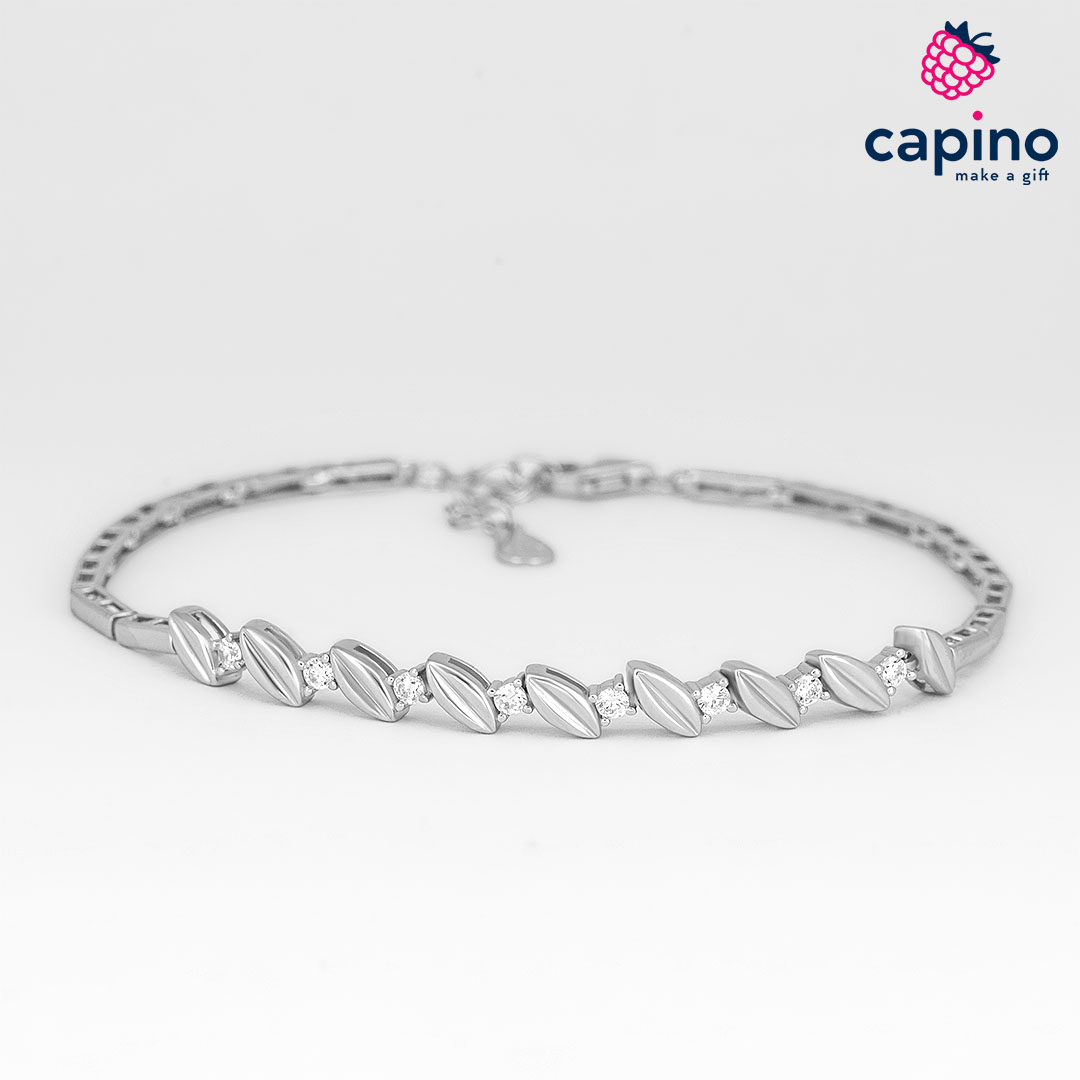 Сребърна гривна Maria е изработена от сребро и е с родиево покритие, и инкрустирани камъни – цирконии.