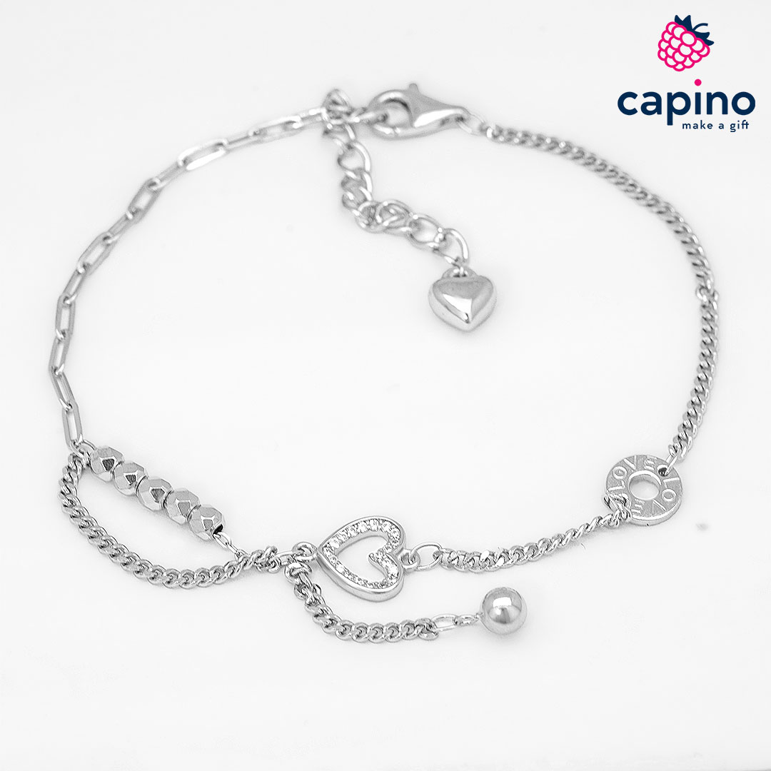 Сребърна гривна Rosaria е изработена от сребро и е с родиево покритие, и инкрустирани камъни – цирконии.
