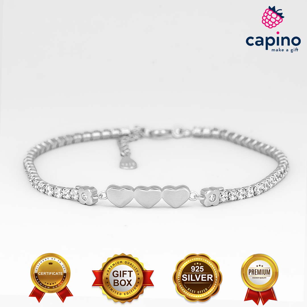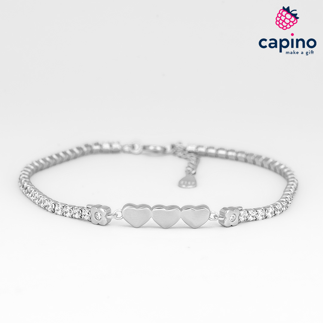 Сребърна гривна сърца Adele е изработена от сребро и е с родиево покритие, и инкрустирани камъни – цирконии.