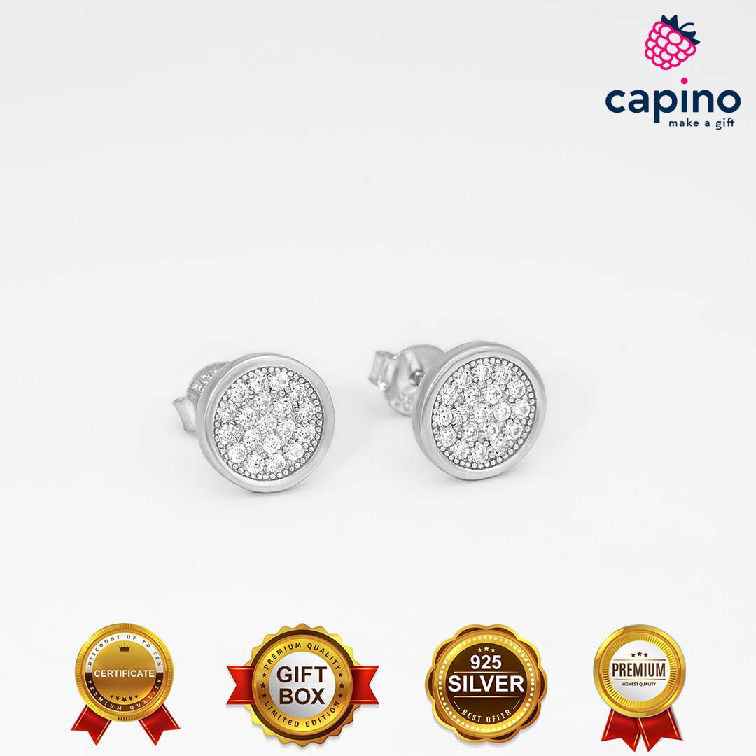 Сребърни обеци кръгче Rocco са изработени от чисто сребро и са с родиево покритие, и инкрустирани камъни – цирконии.