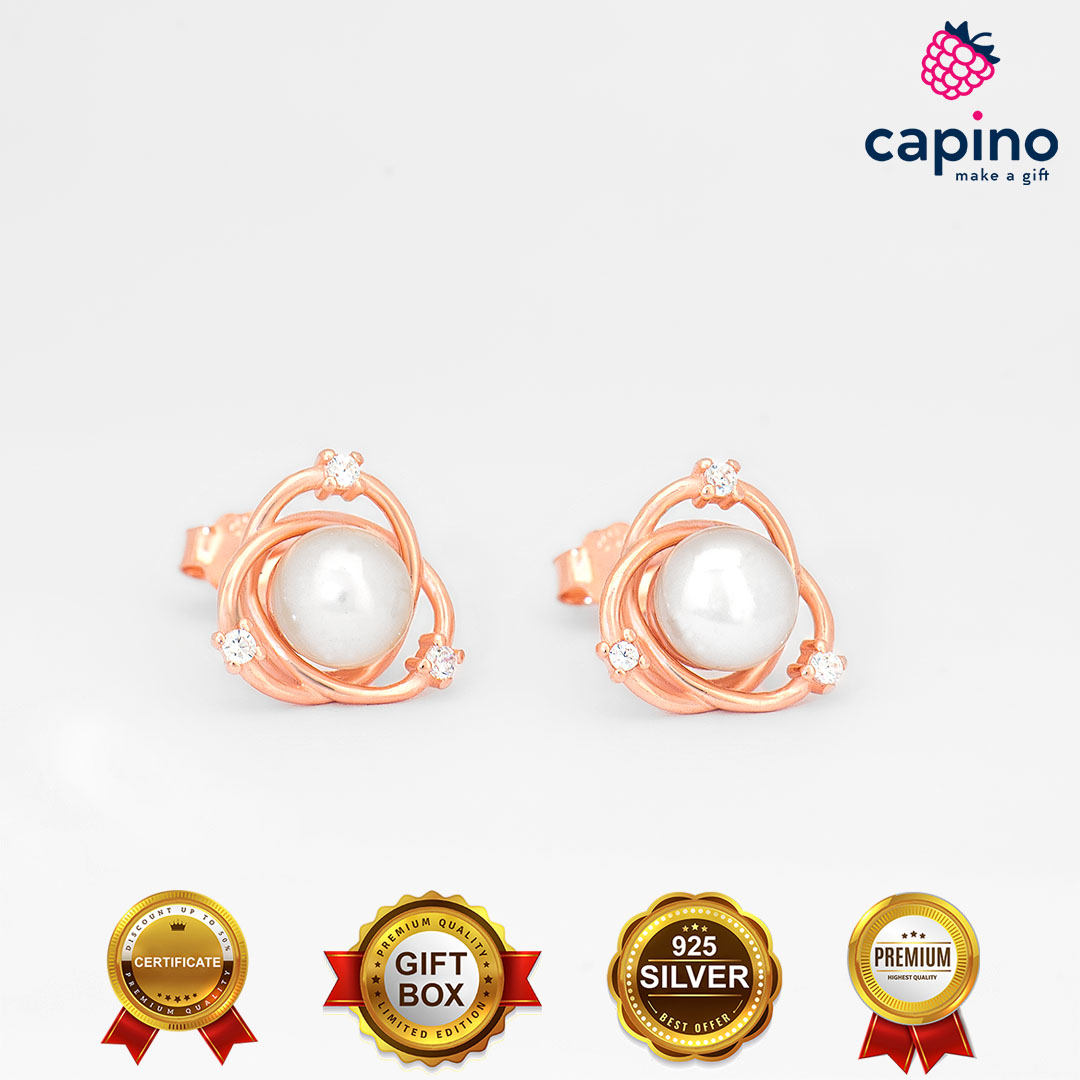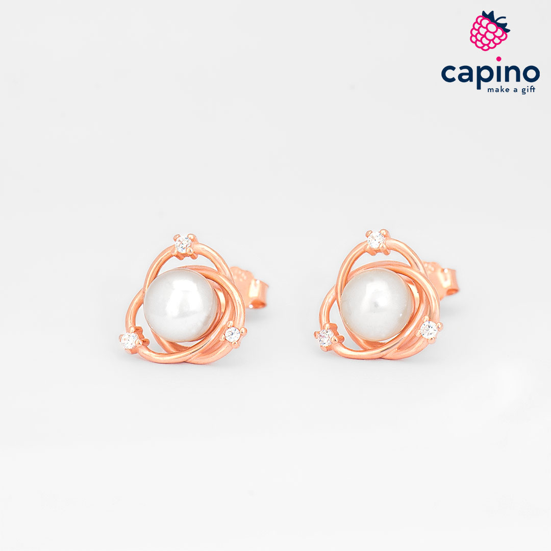 Сребърни обеци Pierangelo са изработени от чисто сребро и са с покритие от розово злато, и инкрустирани перли и цирконии.