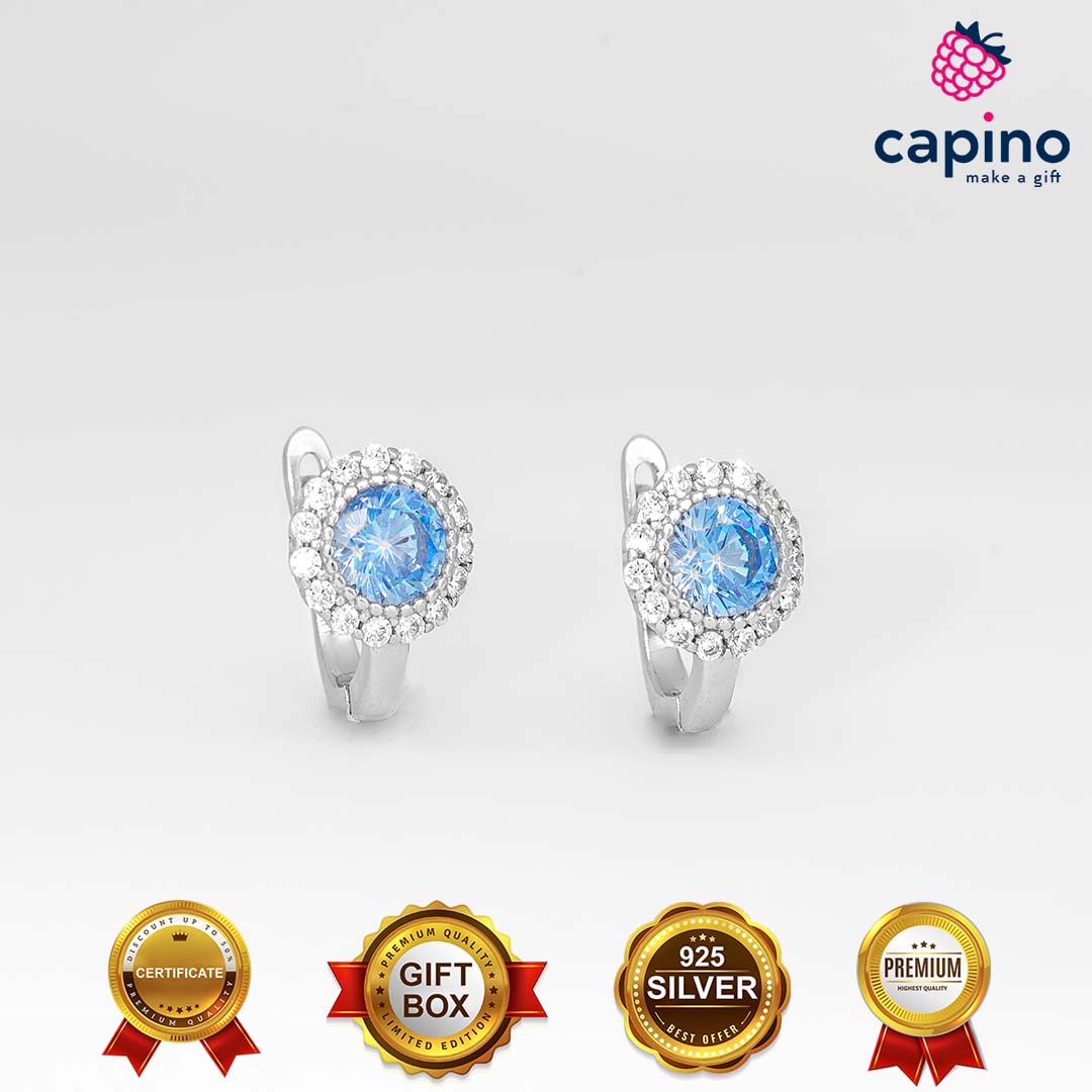 Сребърни обеци Rolando са изработени от чисто сребро и са с родиево покритие, и инкрустирани – сини цирконии.