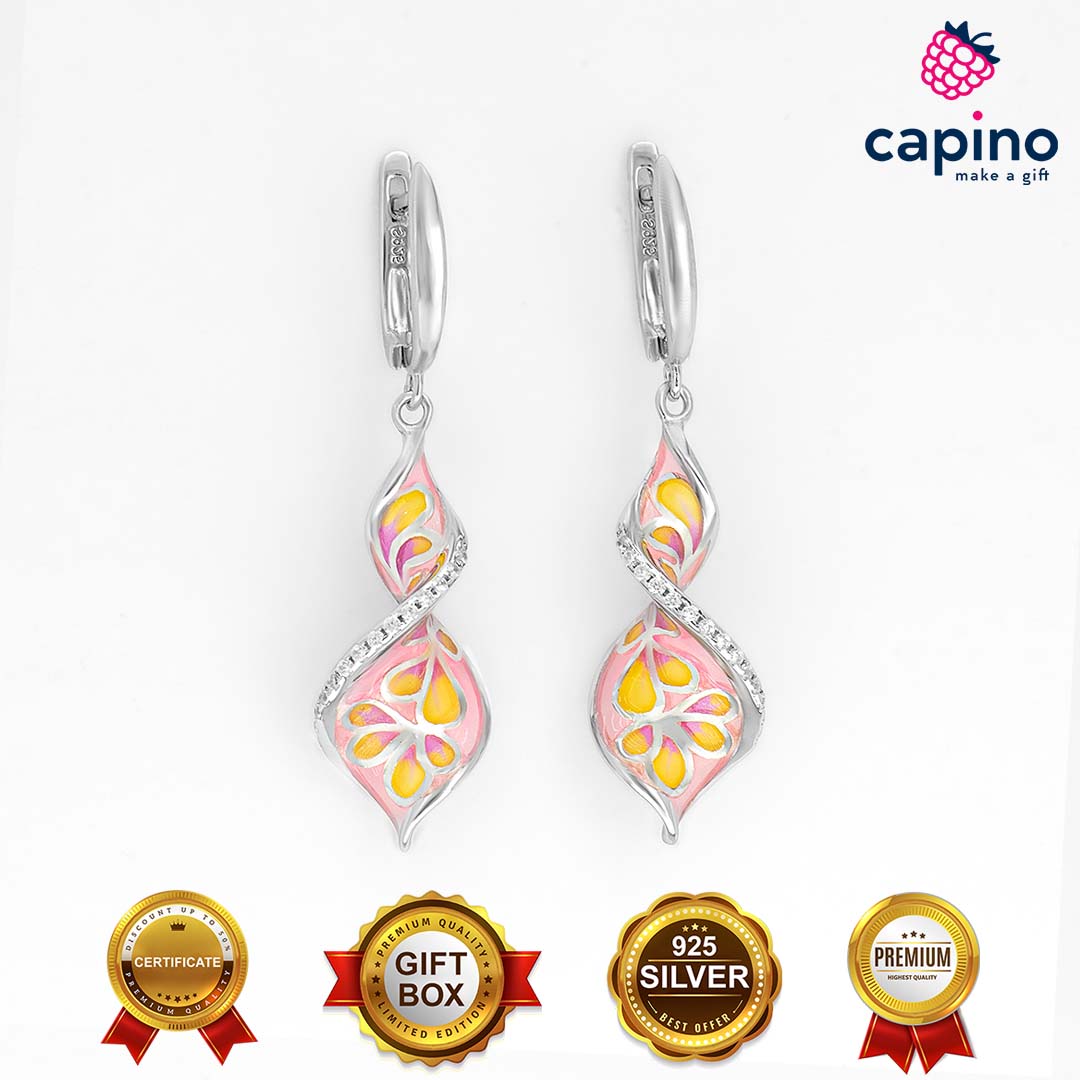 Сребърни обеци Romeo са изработени от чисто сребро и са с родиево покритие, и горещ емайл с инкрустирани цирконии.