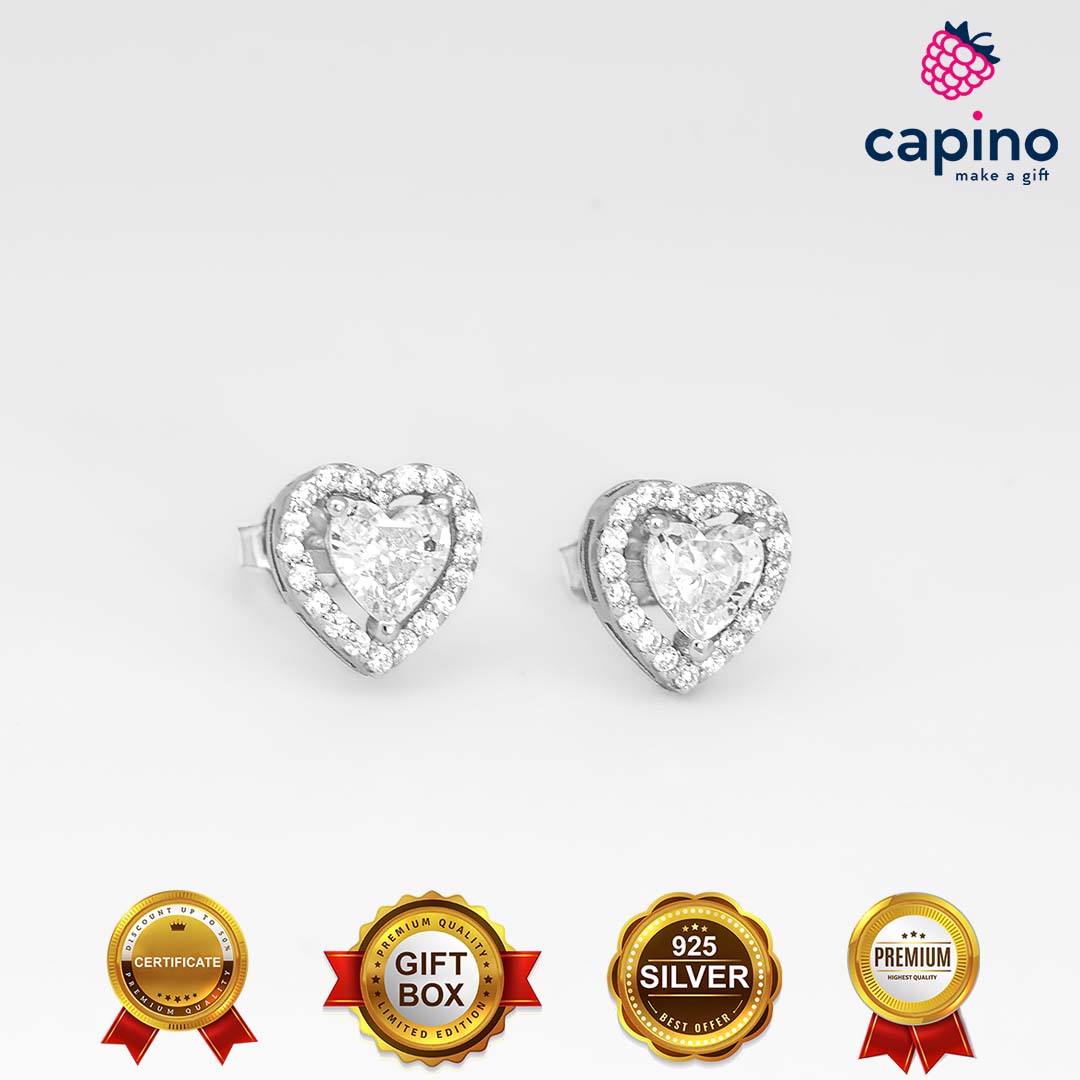 Сребърни обеци сърца Pier са изработени от сребро с проба 925 и тежат 1,9 грама, високи са 1 см. и са 1 см. широки. Те имат родиево покритие, също така са с инкрустирани камъни – цирконии. При всяка поръчка на Сребърни обеци сърца Pier, безплатно получавате луксозна подаръчна кутийка и сретификат за качество на среброто.
