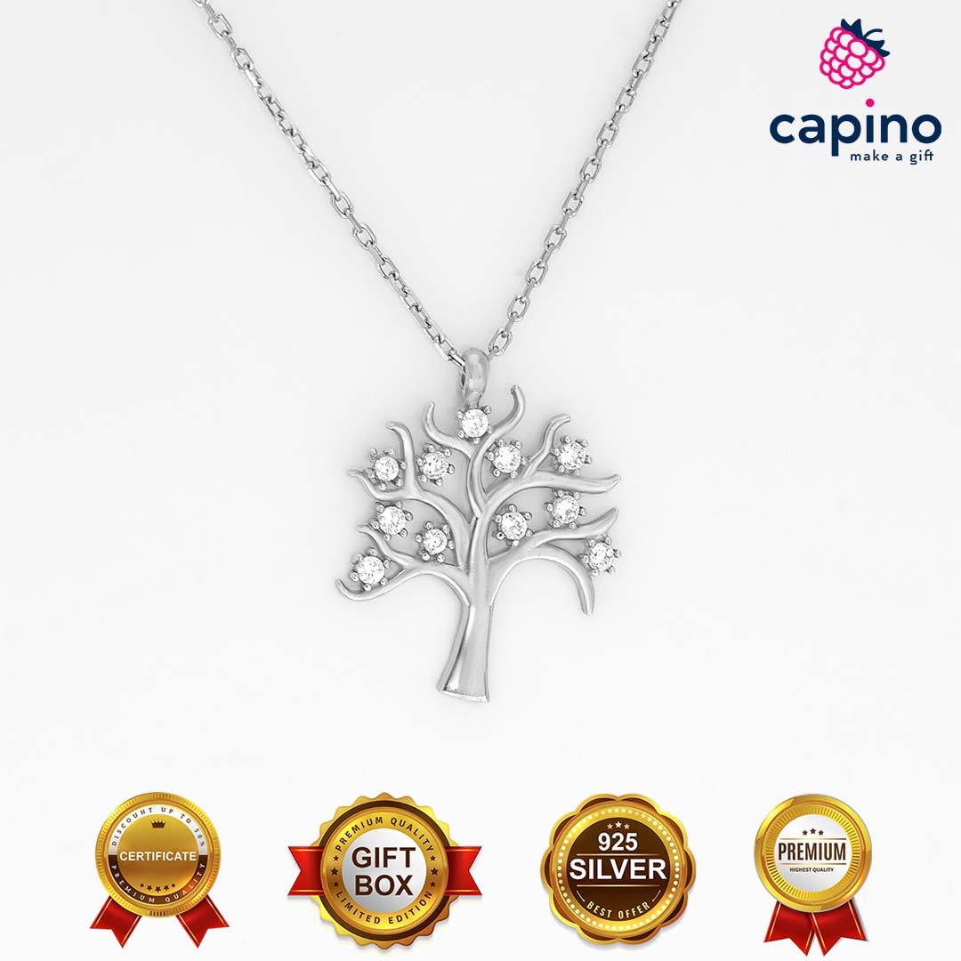 Сребърно колие дървото на живота Gabriele е изработено от чисто сребро и е с родиево покритие, и инкрустирани камъни – цирконии.