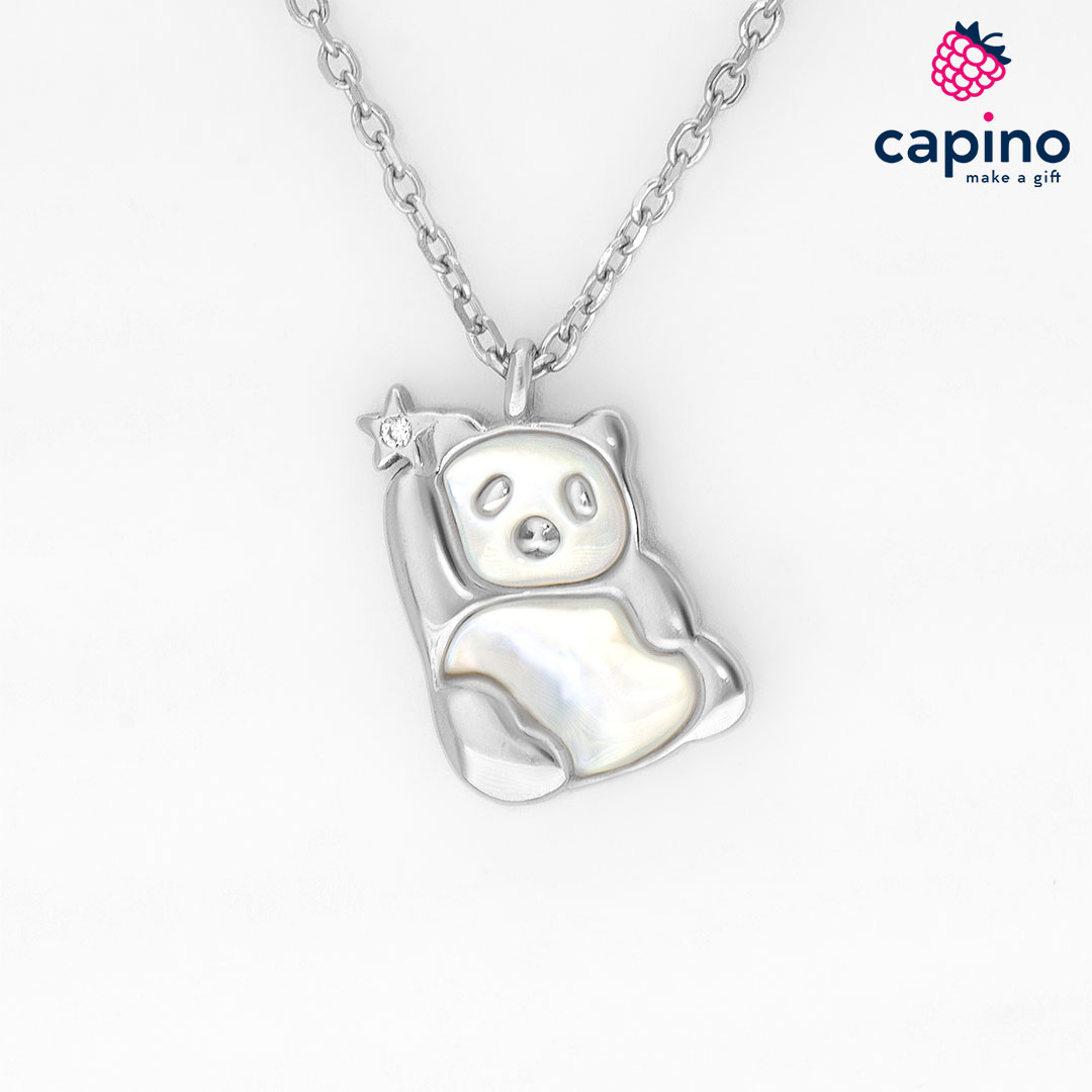 Сребърно колие мече Tonino се продава в комплект – висулка и синджир и тежи 3,1 грама, дължината на синджира е 40 – 45 сантиметра, а височината и ширината на висулката са 1,5 / 1 сантиметра. Колието има родиево покритие, също така е с инкрустиран седеф. Когато поръчате Сребърно колие мече Tonino получавате сертификат за качество за пробата на среброто 925 и безплатна луксозна подаръчна кутийка.