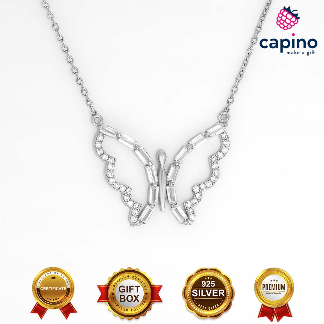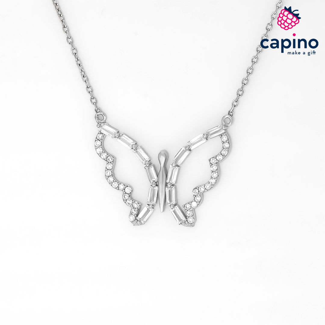 Сребърно колие пеперуда Ludovico е изработено от чисто сребро и е с родиево покритие, и инкрустирани камъни – цирконии.