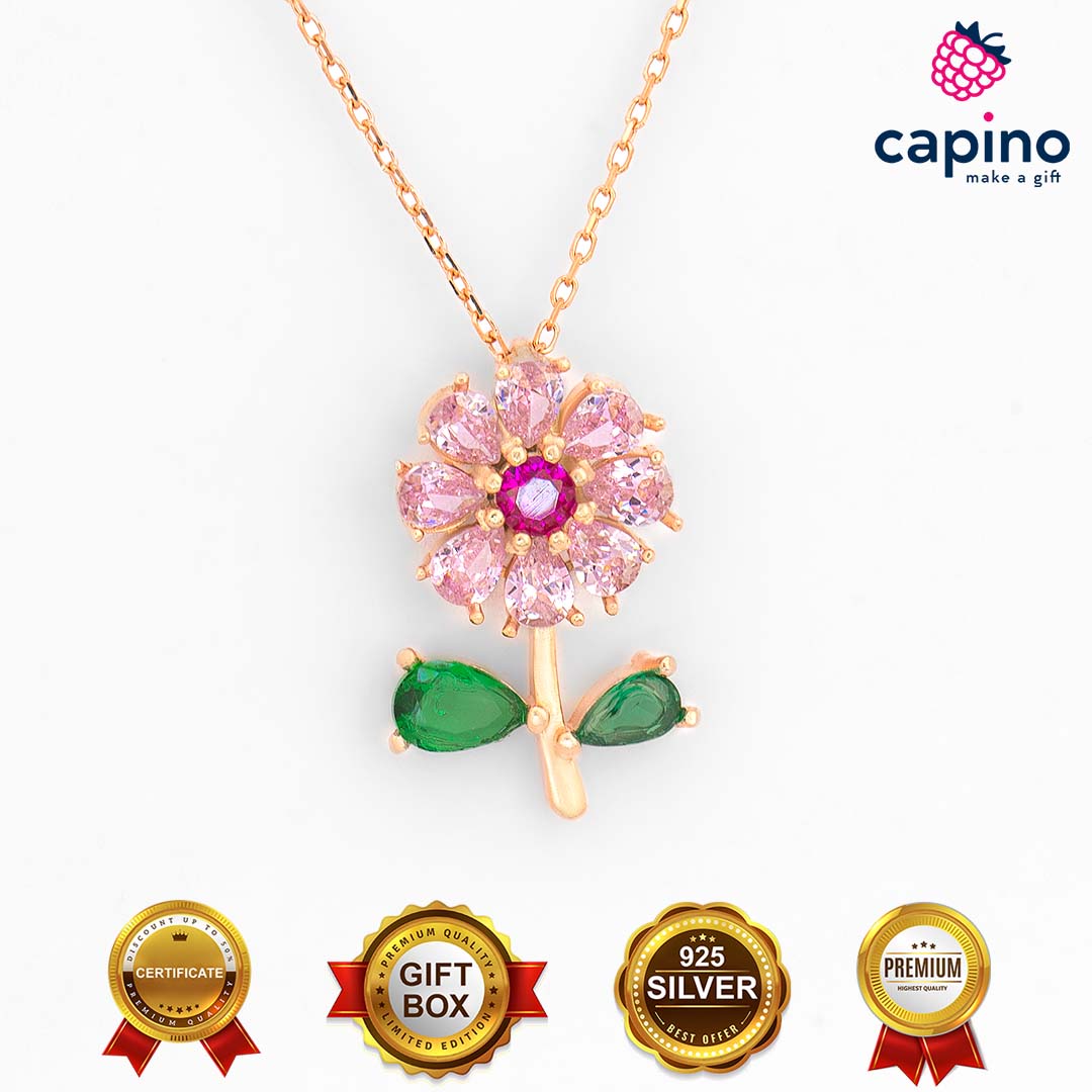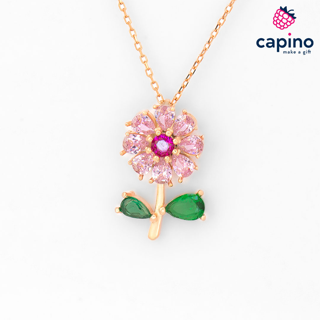 Сребърно колие цвете Giovanni е изработено от чисто сребро и е с покритие от розово злато, и инкрустирани – цветни цирконии.
