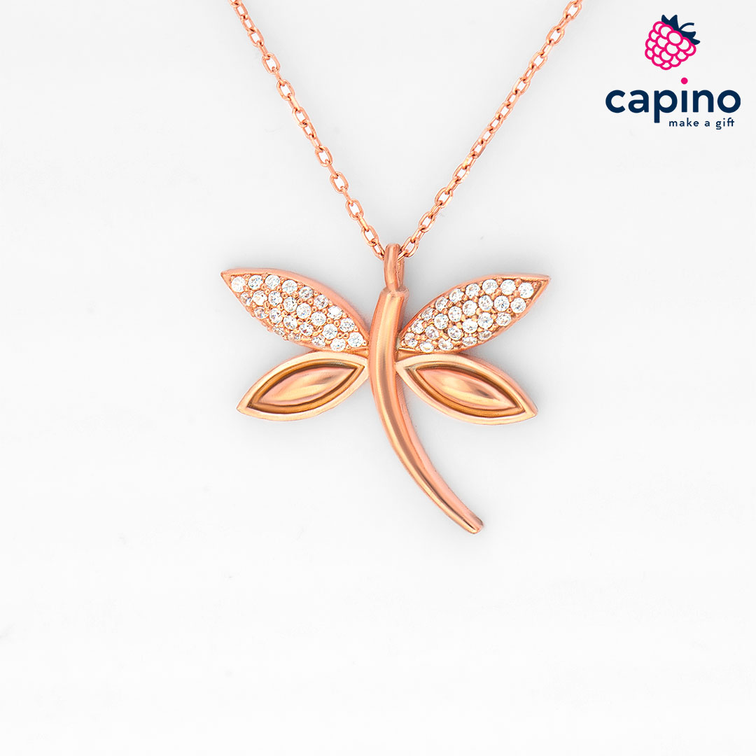 Сребърно колие водно конче Telemaco е изработено от чисто сребро и е с покритие от розово злато, и инкрустирани камъни – цирконии.