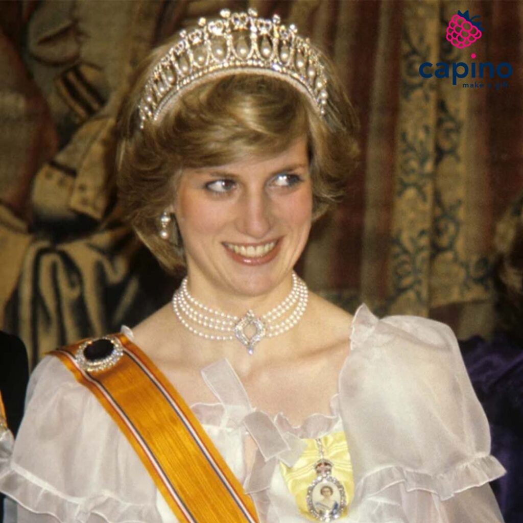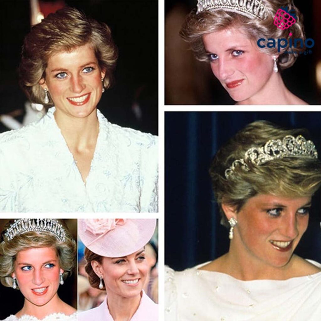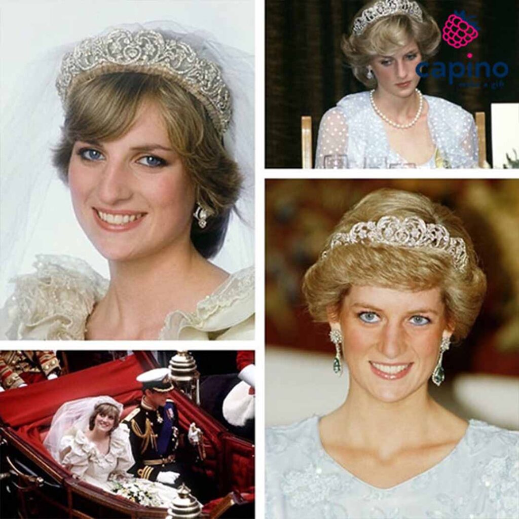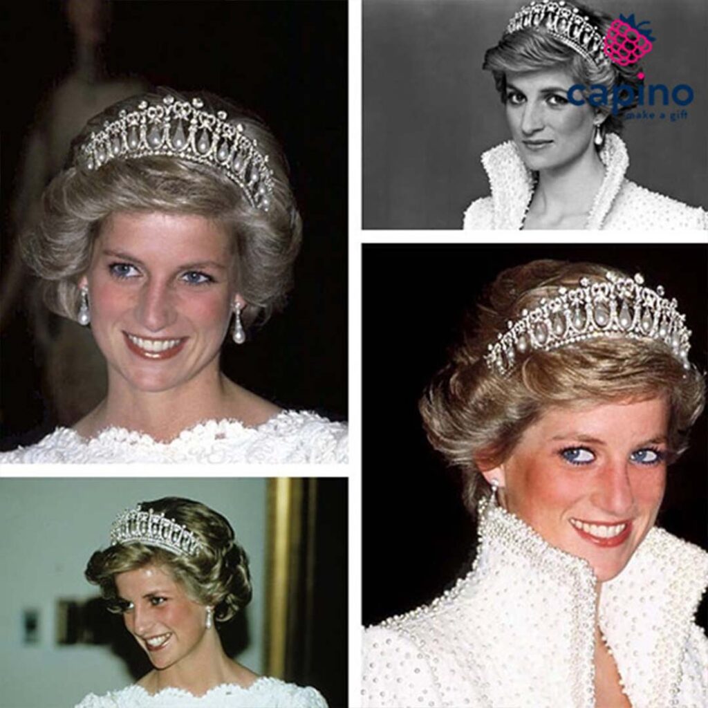 Диадемата на лейди Ди представлява диамантена арка, украсени с 19 перфектно съчетани перли с форми на капки.